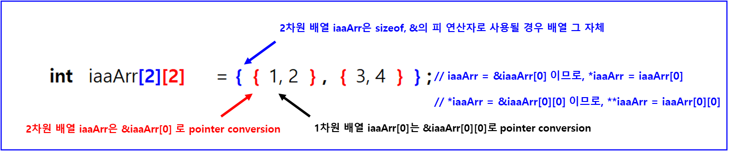 // iaaaArr[0][0]도 1차원 배열이므로, &와 sizeof의 피연산자가 아니면
