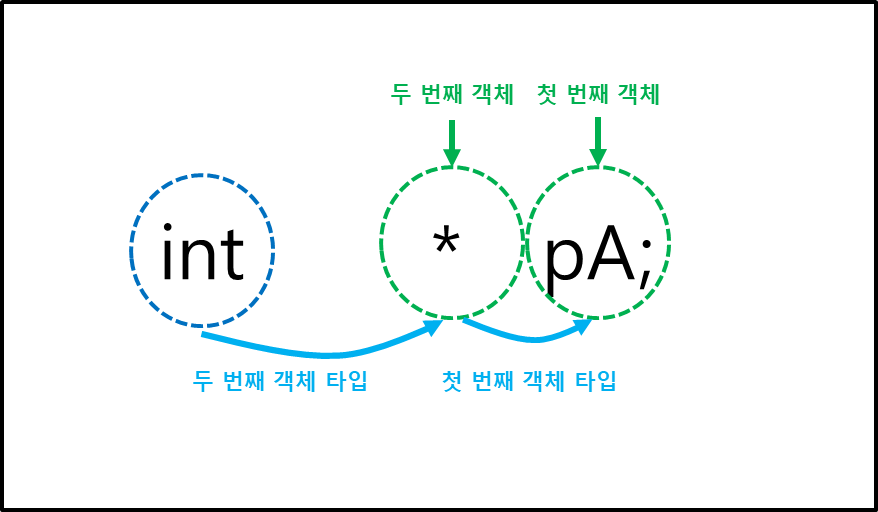 int *pA; // 실제 코드 상에 사용될 때 모습, pA : 첫 번째 객체, *pA : 두 번째 객체